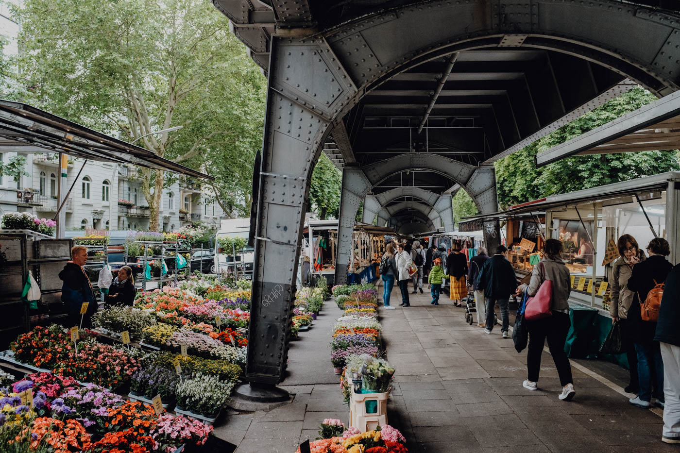 Gestern sollte ich eigentlich eine Fotoreportage für eine meiner Kunden in Hamburg fotografieren. Wetterbedingt musste das Ganze auf die darauffolgende Woche verschoben werden. Ich war allerdings bereits im Fotomodus und wollte einfach raus. Nur gut, dass einer der schönsten und längsten Märke Deutschlands in unmittelbarer Nähe ist. Der Isemarkt am Eppendorfer Baum öffnet jeden Dienstag und Freitag von 08:30 – 14:00 Uhr seine Pforten für neugierige Besucher, Marktgänger und Foodies. Diese entspanne Atmosphäre unter den Brückenträgern der U3 wollte ich umbedingt in einer kleinen Street Foto-Reportage festhalten. Daher mache ich mich von Winterhude aus zu Fuß auf den Weg zum Markt. Meine Eindrücke und Impressionen von meinem Walk über den Markt und auch wieder zurück könnt ihr nun in meiner Fotoreportage begutachten.